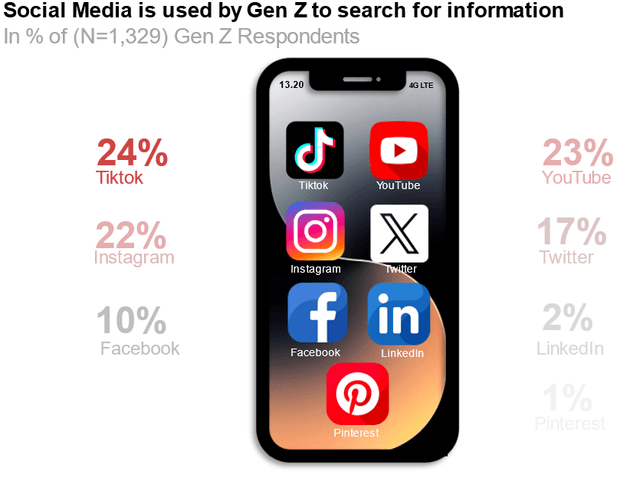 In this new era, Gen Z no longer prioritizes search engines for information gathering. Instead, they turn to social media, with TikTok emerging as their primary search platform, used by 24% of the demographic. This shift underscores the importance of social media not just as a content-sharing tool but as a critical touchpoint for brands to remain relevant when Gen Z seeks products or services.